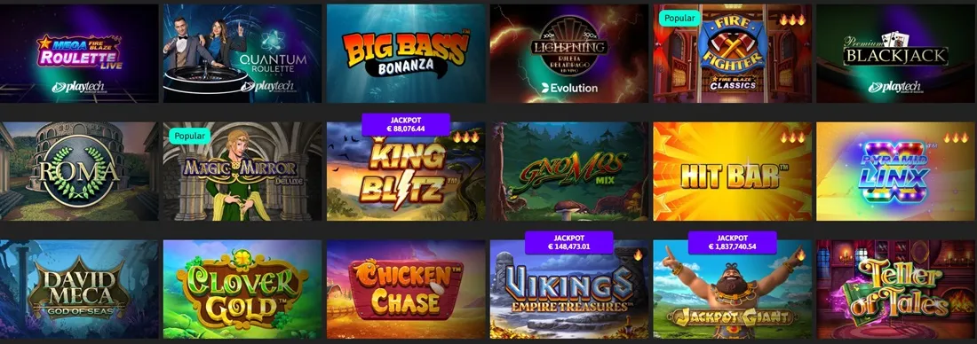 En el catálogo de slots están los juegos de más de 10 proveedores, si tienes experiencia en los casinos online, seguro que los nombres de estas compañías te resultan conocidas. Entre ellas está Pragmatic Play, Playtech, NetEnt, MGA, Amusnet y más.